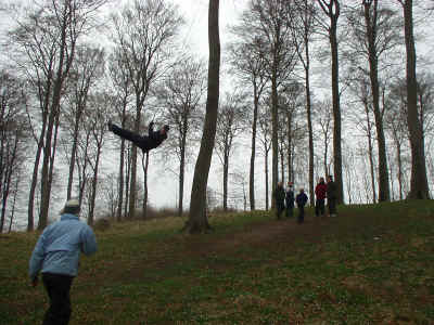 Der var en meget høj gynge og det kan jo altid friste. Så er man ikke så træt i armene alligevel. |