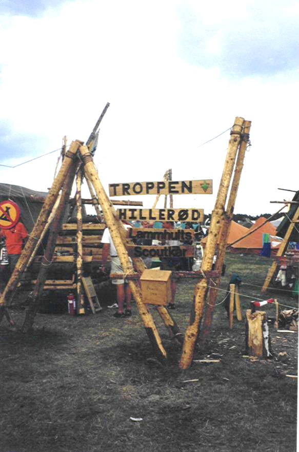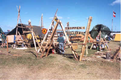 Som altid havde vi det dog skægt og fik en god tur ud af det. Vejrmæssigt vil lejren nok blive husket for sin blæst og meget støv. En stor forskel mellem dansk og svensk spejderarbejde som vil huskes er nok også, at svenskerne stort set ikke pionerer. Nogle af spisebordene (også på billedet) var hele færdige samlesæt de havde med hjemmefra. Derudover så blev der lavet mad på komfurer. Alle medbragte komfurer - store gammeldags metal-komfurer til brænde. De sagde endog, at når de var på hike så satte de bare hjul under. Nogen havde en hel trailer der var opbygget så enden kunne foldes ud. Derved fremkom skuffer, skabe, bordplader, gasbrændere etc. etc. Anderledes ! En sidste meget anderledes ting var bålene. Som nævnt ovenfor så var bålene nærmest koncerter med entertainere etc. Selvfølgelig er det mere scene-optræden når det er de store lejre, men her var det så gearet, at mange slet ikke kom i spejderuniform eller alm. lejrtøj. De havde klædt om med fikse nederdele, stramme jeans/bluser samt make-up og høje hæle. Så langt kommer vi forhåbentlig ikke i udviklingen af lejrbålene ved korpslejrene.