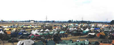 | Et kig på vores lejr fra indgangen. Ialt havde vi en lille "landsby" bestående af 5 grupper. 3 svenske, 1 engelsk og os fra Danmark. Vores adresse var Prati 148.