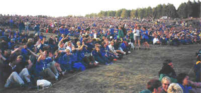 Et billed fra et af de store lejrbål. Alle sad i små rubrikker. |