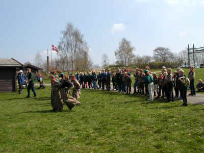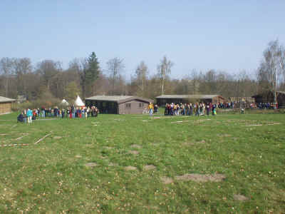 | Denne dejlige søndag med godt vejr mødte alle spejderne op på Frydenborg for at deltage i Sct. Georgsløbet. Der var dog ikke nogen fælles start, så det er svært at se hvor mange der er - men der er mange. |