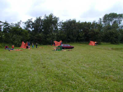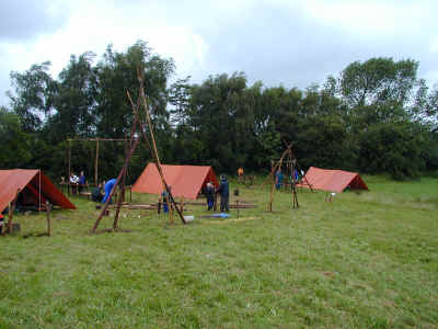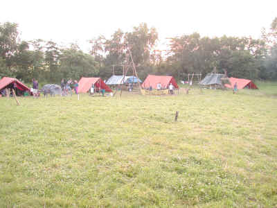 Vel ankommen til "Farmen". Nu skal lejren opbygges og her gælder det juniorspejdernes og spejdernes telte. Spejderpatruljen er yderst til højre.