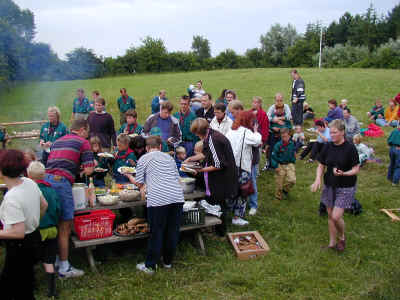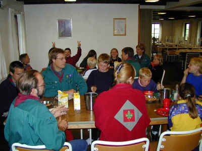 Så er det spisetid - spejdere og forældre.