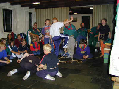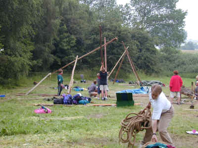 Blandt juniorspejderne foregår der også en masse. Her er de lige begyndt på noget storpionering....