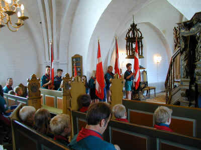 Normalt står vi fanevagt under gudstjenesten.
