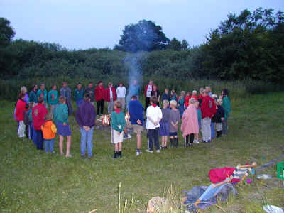 Et lejrbål afslutter vi normalt ved at stå i ring og synge "Nu flyver mørkets fugle ud".