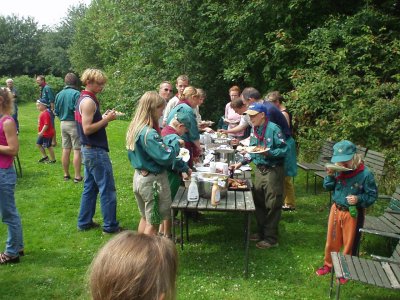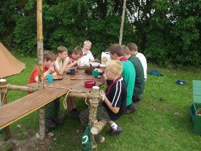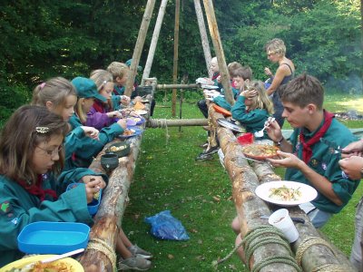 Juniortroppen har også fået bygget et spisebord, som nu skal prøves første gang.