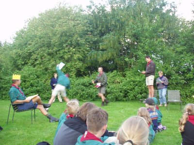 Aftenens fælles lejrbål. Lederne skal opføre et teaterstykke...