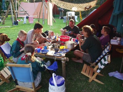 Troppens ledere havde bygget deres eget spisebord, hvor der også var plads til besøgende.