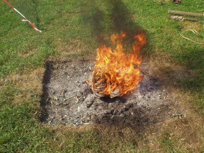 Her er et hold igang med at lave fakler, som skal bruges til aftenens "forestilling".