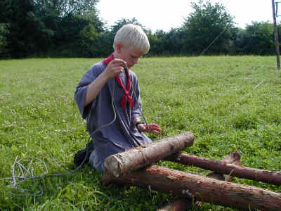 Blandt juniorspejderne foregår der også en masse. Her er de lige begyndt på noget storpionering....